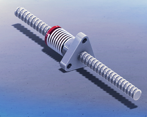Lead screws (Figure 7) perform well for applications that require a high degree of resolution, and with a mating anti-backlash nut have very good repeatability. For rolled threads, the linear error per revolution of the screw is linear and can be compensated for with available control technology which makes them an option in applications where high accuracy is required. They are low noise as long as vibration is not induced by resonance or slip stick friction. Lead screws also have the unique ability to hold a vertical load without the need for a brake if the back driving efficiency is less than zero. They are typically very cost effective, but are limited in stroke due to critical screw speed (screw whip), and have low efficiency in fine leads (fast leads can have efficiencies over 85%).