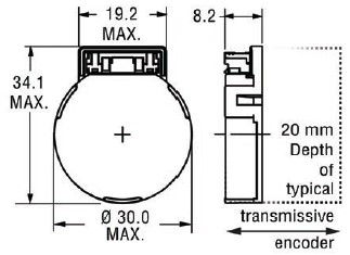 Transmissive Encoders, a common choice, operate by shining a light through a code-wheel that either allows light to pass or doesn’t in equal increments. Then, using a detector on the other side, it will output a square wave pulse. The stack-up of required components ensures that the typical transmissive encoder (in the 30mm diameter size range) will be 20mm or over, in height.