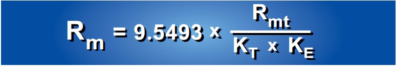n0 = 9.5493 x [(VT – I0 x Rmt( f )) / KE( f )]