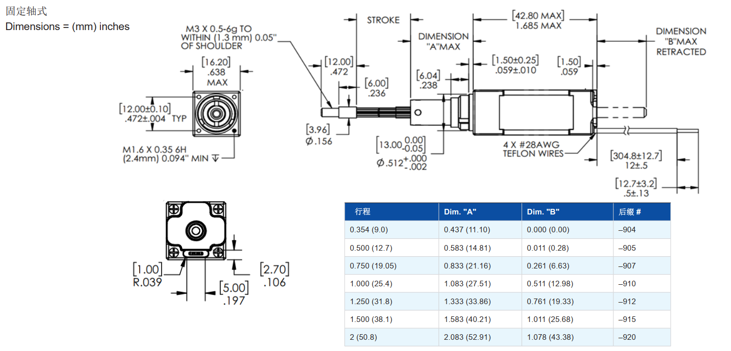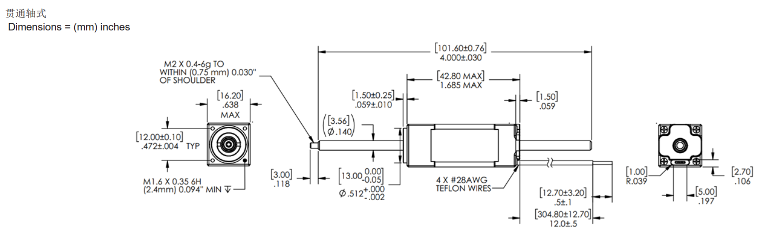 注释A:在特定的固定轴式和贯通轴式电机上,螺杆延伸到编码器之外。可根据要求提供外部驱动式。