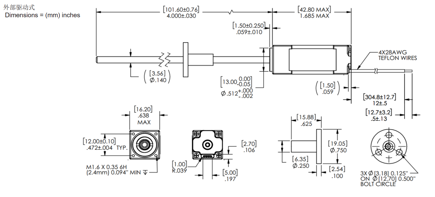所有Haydon混合式直线步进电机均可配备一个专用编码器,以用于需要反馈的应用。紧凑型光学增量式编码器设计具有双通道正交TTL方波输出。可选索引也可作为第三通道使用。Size 8编码器的分辨率适合每转需要250和300个计数的应用。 Size 11、14和17编码器的分辨率适合每转需要200、400和1,000个计数的应用。 Size 23和34编码器的分辨率为每转200、400、1,000和2,000计数。编码器可用于所有电机配置 - 固定轴式、贯通轴式和外部驱动式。